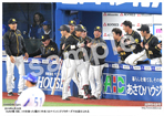 2019年4月14日 中日戦 4回、西の2点適時打で生還し、ナインとタッチを交わす木浪 |