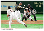 2019年4月9日 DeNA戦 8回、ソロを放つ梅野 |