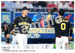 2019年4月24日 DeNA戦 今季初勝利を挙げ、矢野監督(左)とガッチリ握手する才木 |