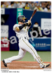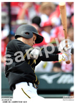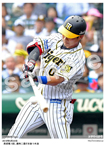 2019年9月21日 広島戦 6回、ジョンソン(手前)から左前打を放つ近本 |