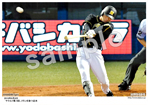 2019年9月7日 広島戦 1回、薮田(手前)から中前打を放つ木浪 |