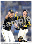 2019年10月7日 DeNA戦 最後を締めガッツポーズをして歓喜する藤川(左)と梅野 |
